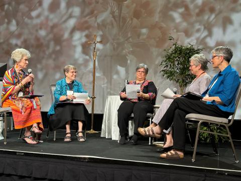 During the assembly the members blessed the new leadership for the conference. Sister Vicky Larson, a sister of the Presentation of the Blessed Virgin Mary of Sioux Falls, South Dakota was selected as the LCWR president-elect. She joins Sister Kathy Brazda, CSJ who will serve as president for 2024-2025, and Sister Maureen Geary, OP who will serve as immediate past-president. Elected to the national board were Sisters Sandra Helton, SSND and Betsy Pawlicki, OP. In addition, the board appointed Sister Jeanne Hagelskamp, SP as the conference treasurer.